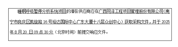 6.采購需求:睡眠呼吸暫停分析系統(tǒng)項(xiàng)目1項(xiàng)。具體內(nèi)容詳見本競爭性磋商文件。