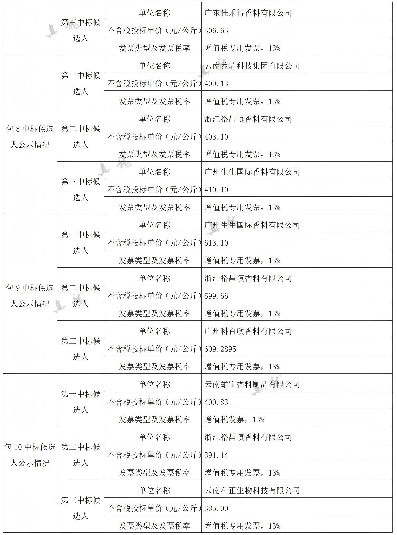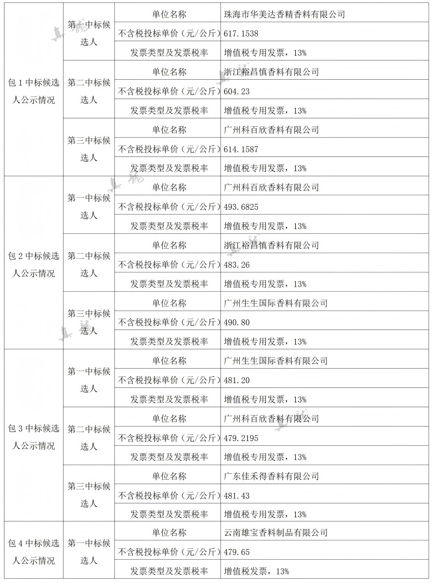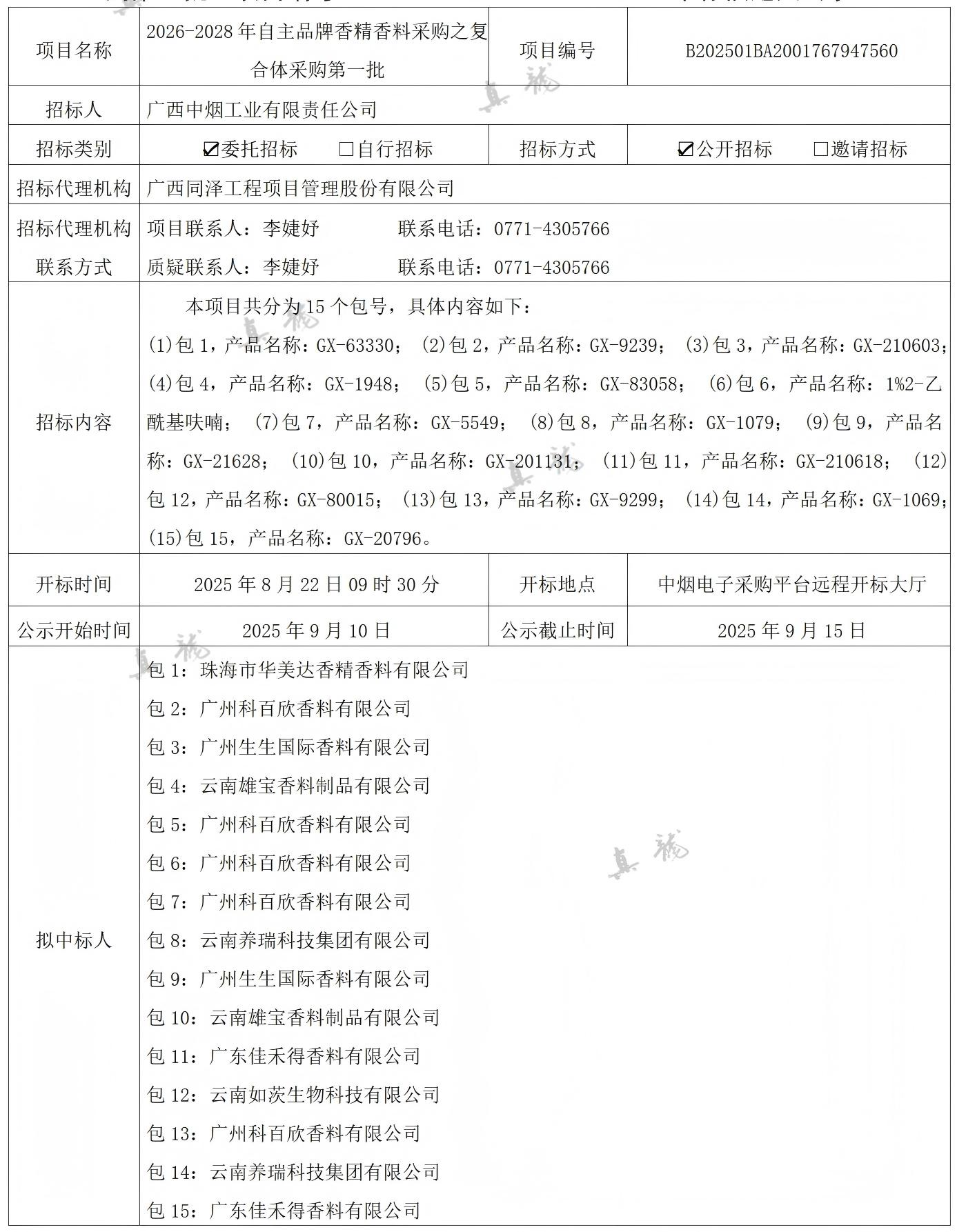 廣西中煙工業(yè)有限責(zé)任公司2026-2028年自主品牌香精香料采購之復(fù)合體采購第一批(項目編號:B202501BA2001767947560)中標(biāo)候選人公示