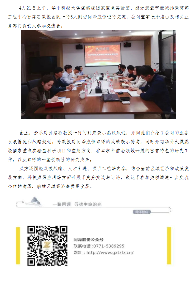 合作交流 | 華中科技大學(xué)專家團(tuán)隊(duì)到訪同澤股份座談交流